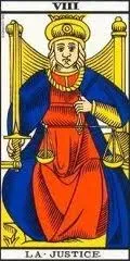 La Justicia, asociada al número 8, simboliza la búsqueda de la verdad y la imparcialidad. A diferencia de El Emperador, que impone un orden estructural y material, La Justicia se enfoca en el orden moral y kármico. Su presencia en una lectura sugiere que es momento de actuar con integridad, dejando de lado los sesgos personales para evaluar la realidad tal como es.