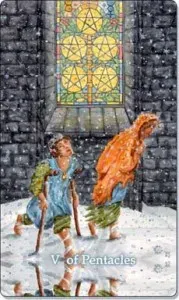 Cuando esta carta aparece en una tirada, el cinco de oros en el tarot tiene un significado que trasciende la simple falta de recursos económicos. Al derecho, simboliza una crisis que pone a prueba nuestra fortaleza interna. Es común experimentar sentimientos de abandono, ansiedad o la sensación de estar atravesando un momento de soledad profunda.