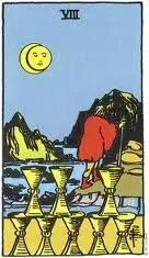 • Responsabilidades: A veces, el Ocho de Copas refleja el peso de las obligaciones familiares que nos impiden seguir nuestro propio camino.